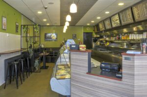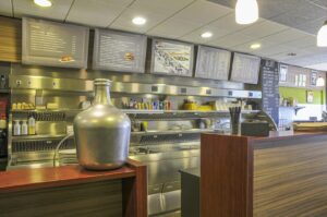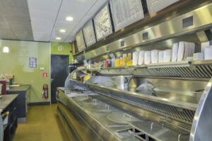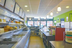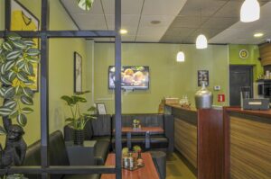 Dit fraaie horecabedrijf is volledig ingericht als afhaal- en eetgelegenheid en biedt volop mogelijkheden om de bedrijfsvoering verder uit te breiden. Een belangrijke troef is de ruime warme-bereidingskeuken met aparte ingang; ideaal voor het uitbreiden van cateringdiensten en het starten van een bezorgservice.