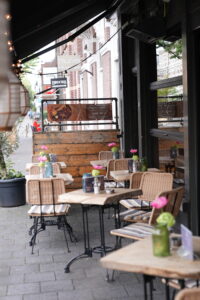Ook aan de voorzijde van het restaurant bevindt zich een terras, waar ca.16 gasten kunnen genieten van het heerlijke eten én de levendige ambiance van de Ginnekenweg.