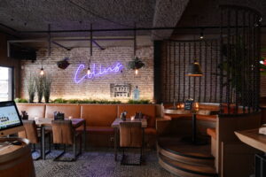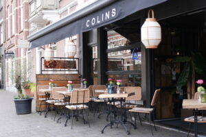Sinds de opening medio 2017, in het voormalige Indonesische pand Singaradja, straalt Colins een New York‑achtige, industriële sfeer uit – met ruwe materialen zoals staal en hout, een centrale bar en een ruim open keuken.